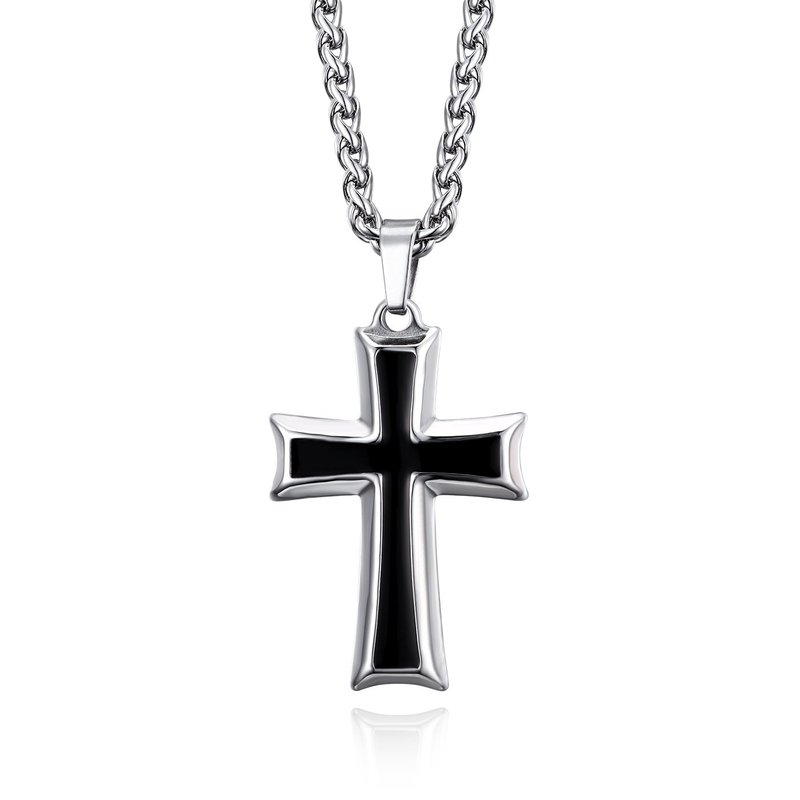 - Black Silver Tone Cross Pendant Necklace for Men Women