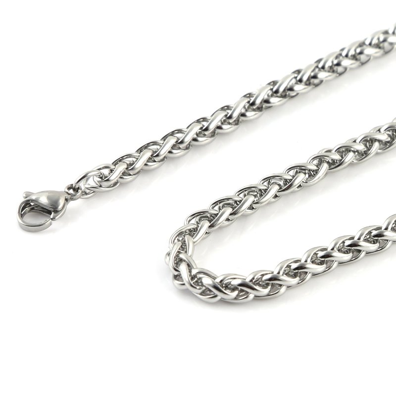 HZMAN Mens Stainless Steel Cross Pendant Necklace with Wheat Chain (Silver)