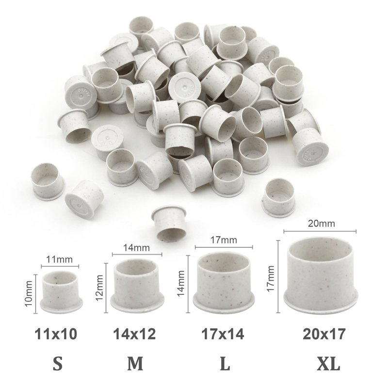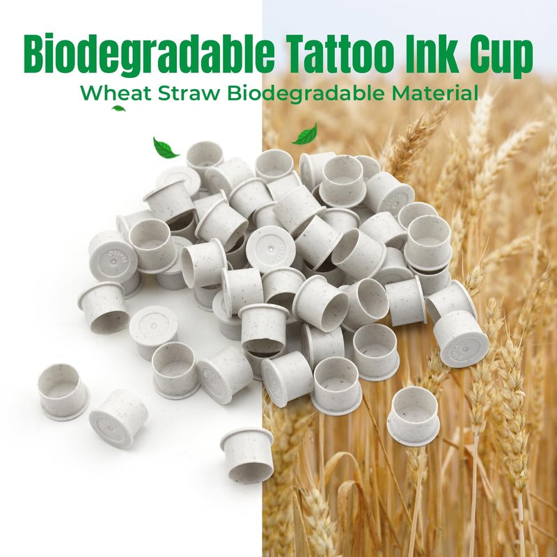 The perfect eco-friendly solution for your tattooing needs! Made from a combination of wheat straw biodegradable materials, these cups are a sustainable alternative to traditional plastic tattoo ink cups.