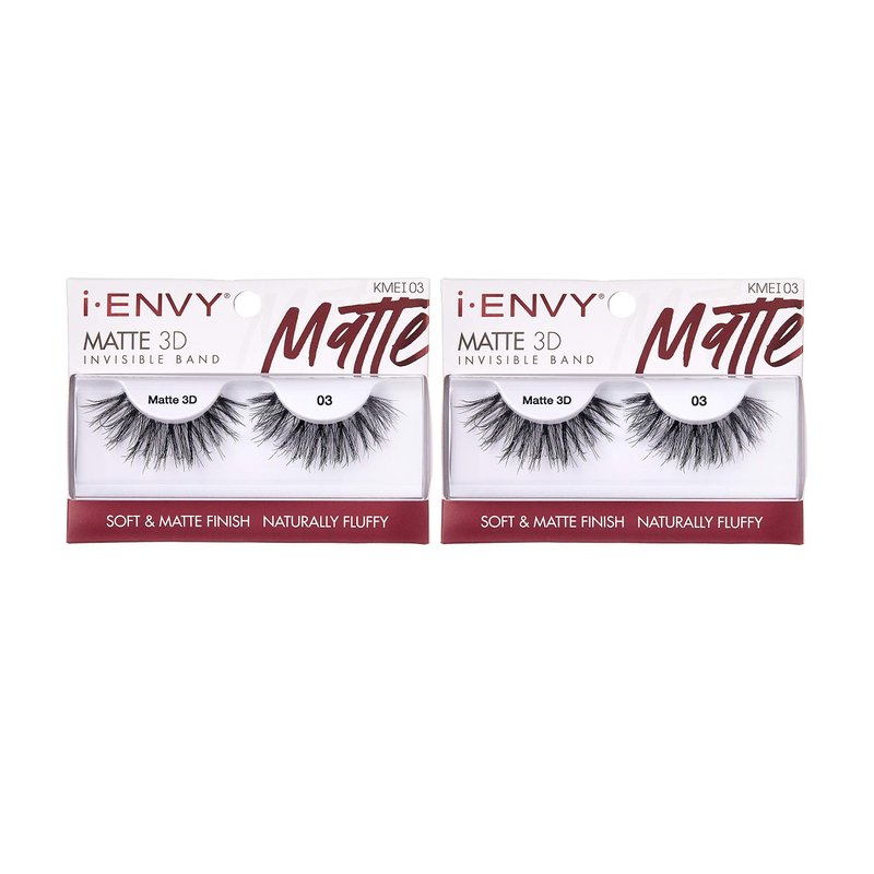 i-Envy 2 Pairs False Eyelashes Matte 3D Collection, Invisible Band, Soft & Matte Finish