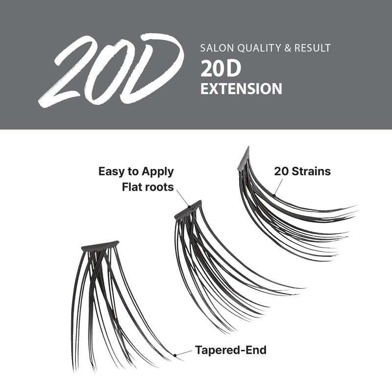 i-ENVY 20D Extension Cluster Individual Lashes, Easy to Apply, Flat Tapered-End Root, Pre-fanned Volume Lashes, J Curl with Soft Fiber, Quick Application for Salon Quality & Result (Short)