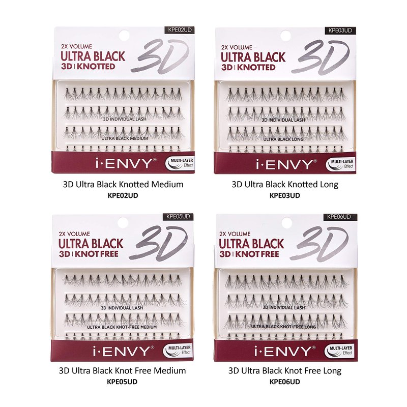 i-ENVY 2X Volume 3D Ultra Black Individual Lashes (3 PACK, Knot Free - Long)