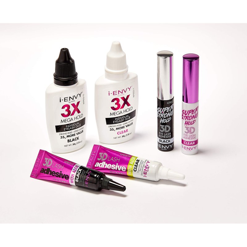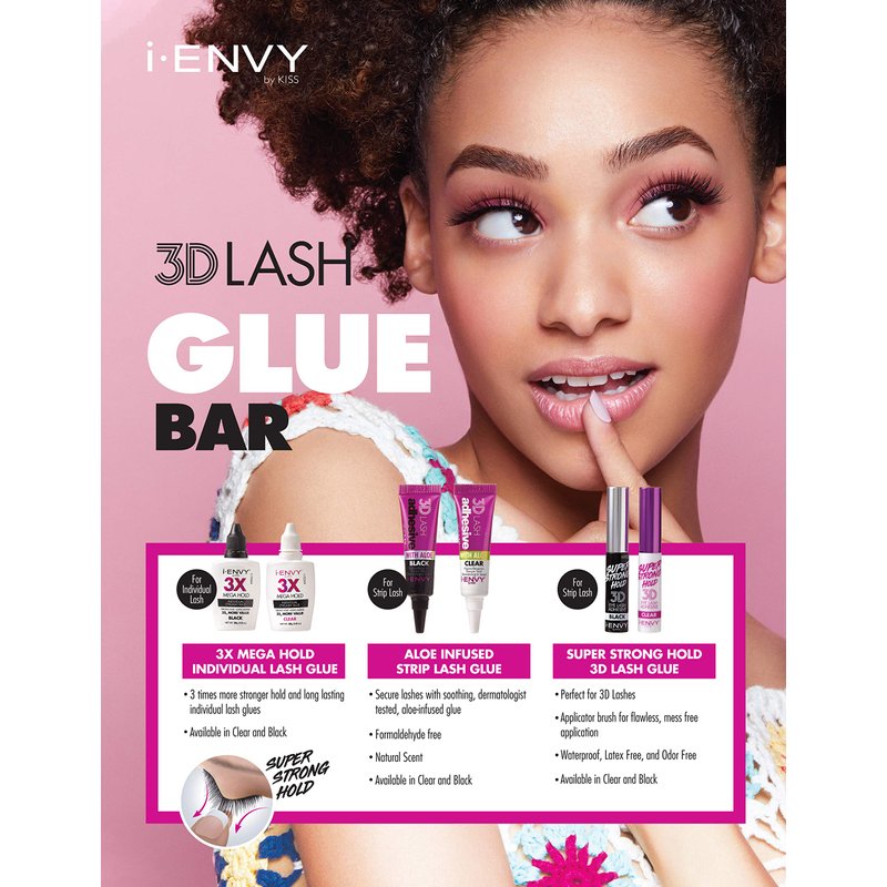 i-Envy by KISS Super Strong Hold 3D Strip Lash Glue, Waterproof Brush-On False Eyelash Adhesive, Latex-Free, Long-Lasting & Easy Application, Ideal for Sensitive Eyes (Clear)