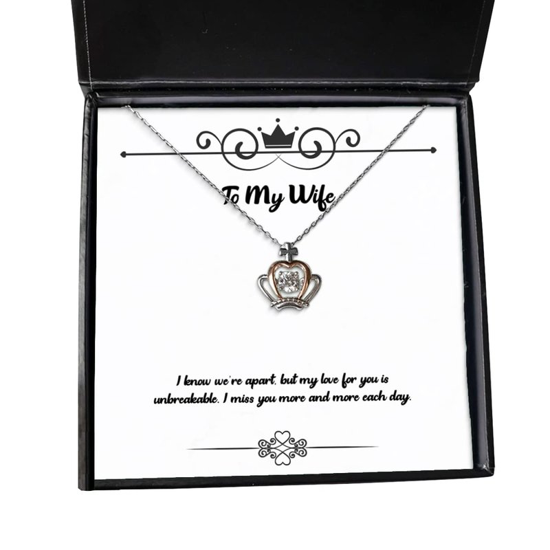 I know we're apart, but my love for you is unbreakable. I miss you. Crown Pendant Necklace, Wife Jewelry, Reusable Gifts For Wife, Wife gift, Gold crown necklace, Queen crown necklace, Princess crown