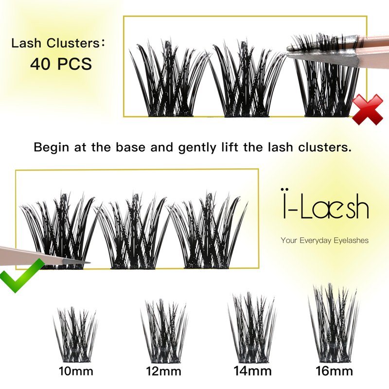 - DIY LASH EXPERIENCE: Embrace the DIY lash trend with i-Laesh's 40-cluster tray, perfect for creating a manga-inspired look at home. Easy to apply and even easier to love, our lash clusters are your ticket to beautiful lashes without the salon visit;
