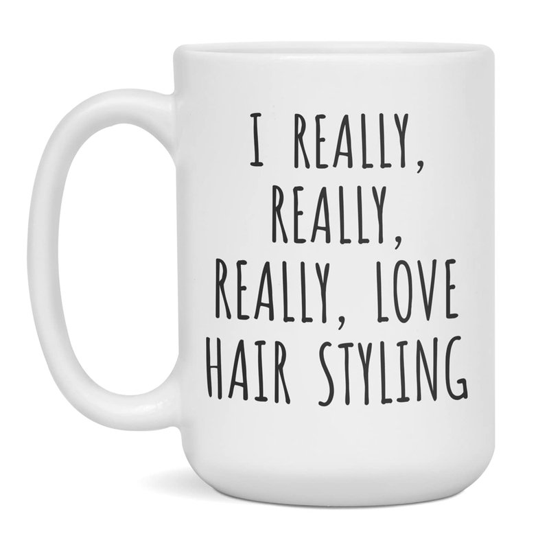 I Really Really Really Love Hair Styling design ceramic mug makes a great gift idea. Awesome and novelty mug gift for Father's Day, Mother's Day, Birthday or Christmas. High-quality ceramic coffee tea mug cup for hot or cold drinks. 100% dishwasher and microwave safe.