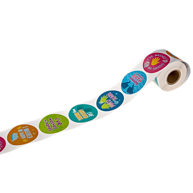 Teach your little ones about hygiene with these 2 inch motivational stickers. Convenient perforation between each label makes them extremely easy to disperse to little hands after successful hand washing! This roll comes with six exciting designs that work great for rewards in churches, doctor's or dentist's offices, clinics, daycares and elementary schools. Includes: