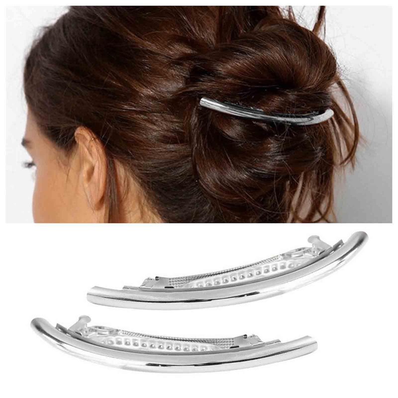 Iaceble French Metal Bar Hairclip Barrette Silver Tube Bar Hair Clips Geometric Bar Hair Barrette Metal Ponytail Holder Hairclip Headclip Polished Bar Hairclips Decorative Hair Accessories for Women