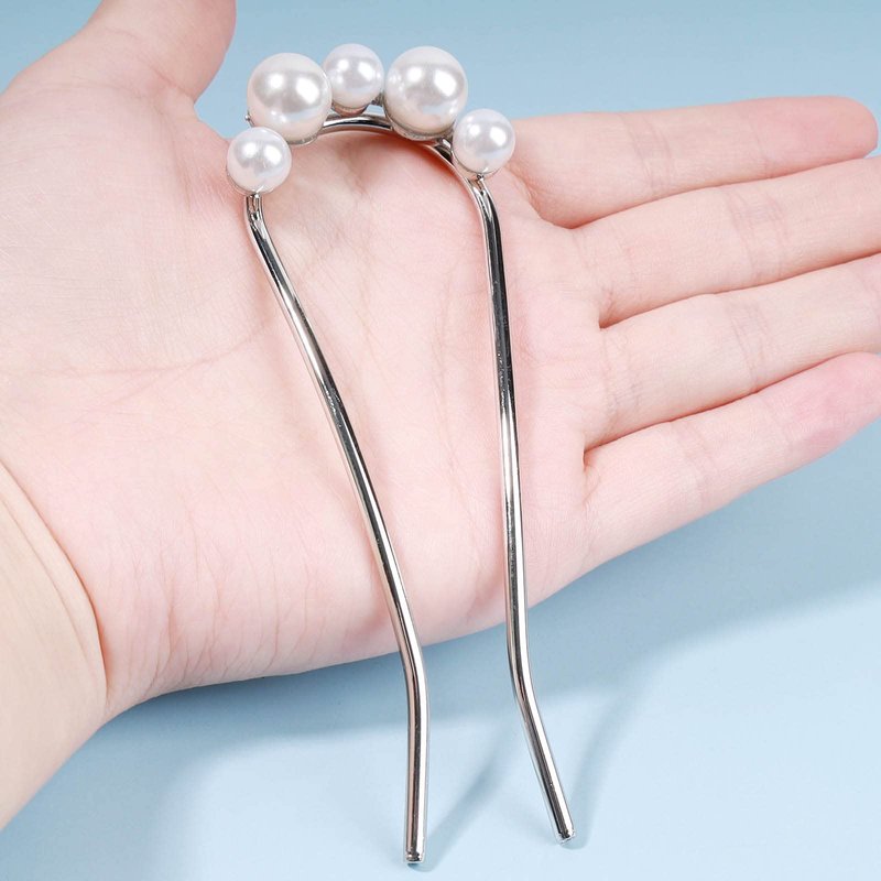 Iaceble Minimalist Pearl U Shape Hairpin Metal Silver Hair Fork Stick Updo Hair Sticks Clip French Pearl Hair Pin Decorative Hair Accessories for Women and Girl Headdress