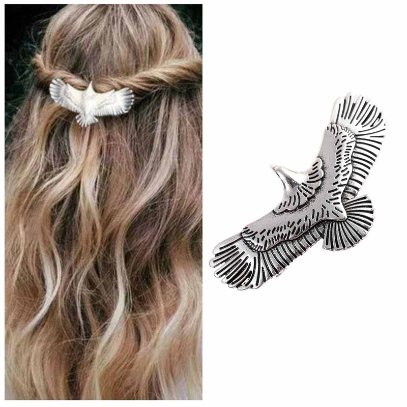 Iaceble Vintage Eagle Hair Clip Barrette Metal Bird Hair Clips Hairpin Silver Hair Barrette Head Clip Boho Eagle Hair Pin Accessories for Women and Girl Headdress (Silver)