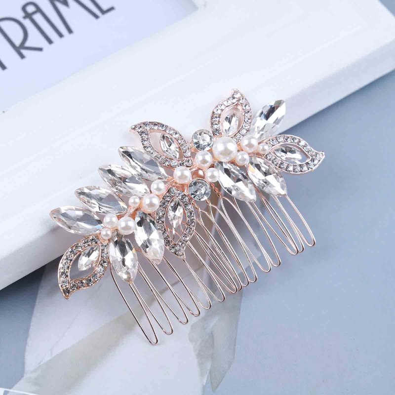 - Gold crystal bridal headpiece made of quality alloy and imitation pearl and rhinestone,durable,meet your daily hair accessories needs.