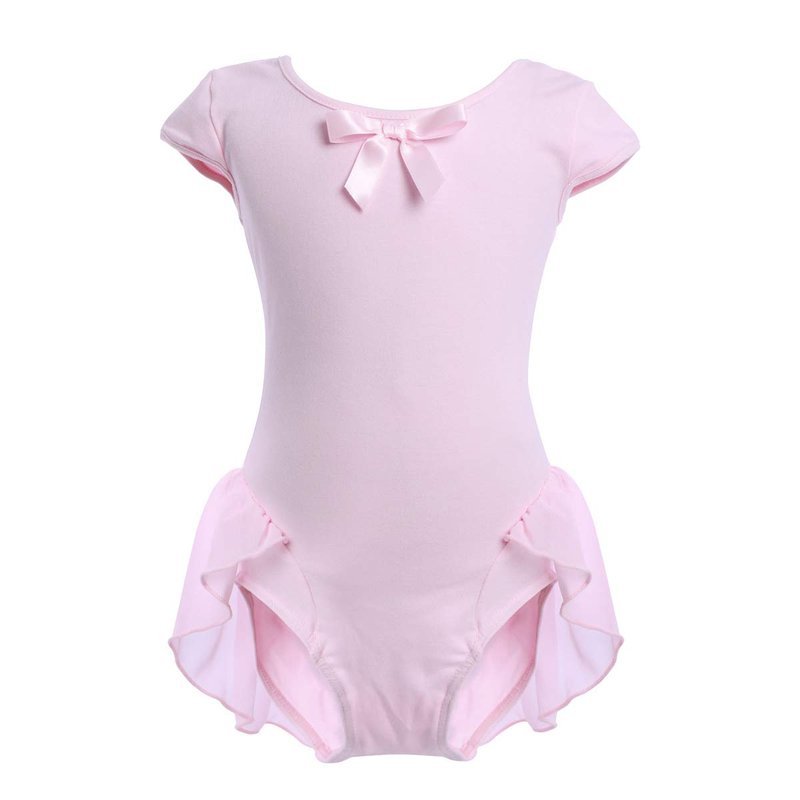 - EXQUISITE UNIQUE CHIC DESIGN:Bowknot chiffon ballet party pageant dresses,Round neck, cap sleeve, low back design, a lovely bowknot decor at neckline, adds one layer chiffon fabric at bottom, High Cut Low Back Leotard Dance Blouse Top.very comfortable and convenient,Girls gymnastics sport fitness ballet leotard top with dance shoes, tights,skinny leggings pants, long sleeve cotton wrap coat, ect, let your child become an angel and be the brightest stars on the stage when dancing