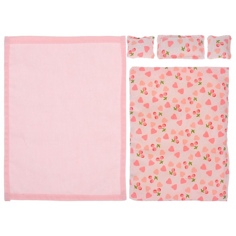 1 × Doll House Bed Sheet 1 × Doll House Quilt 1 × Large Doll House Pillow 2 × Small Doll House Pillows
