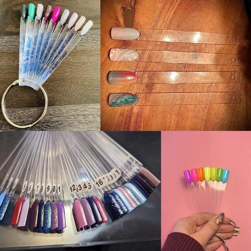 - 【Fan Nail Art Display】 When you have these clear nail swatch sticks with ring, you will know the color of all your nail polish at a glance, they can show the true color of nail polish very well and are perfect as a nail polish color display fan. You can also use the numbered stickers we included to number these colors, so you can easily find and use them quickly afterwards.