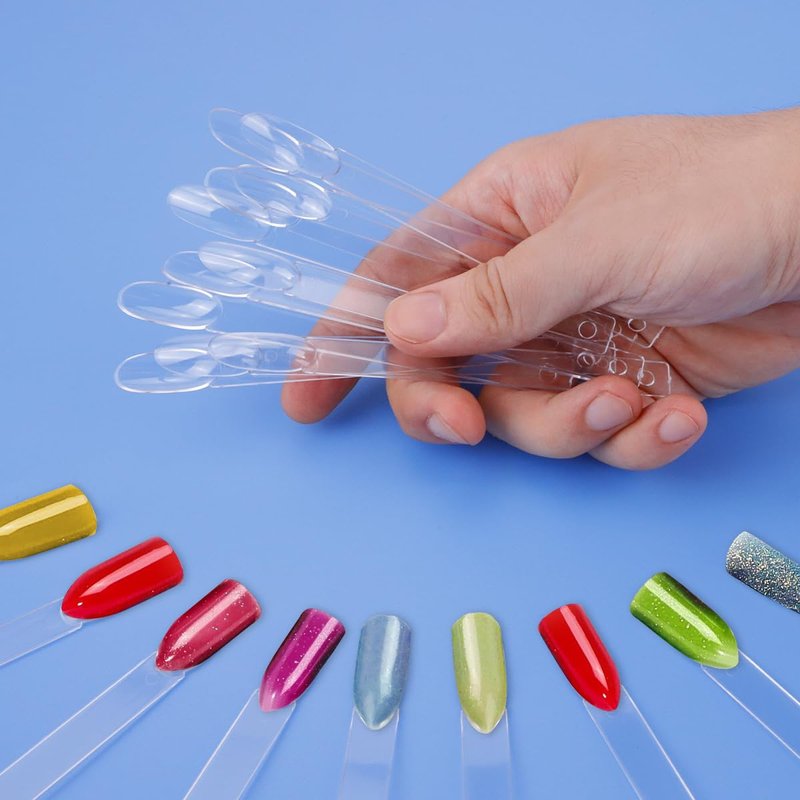 - 【Wide range of use】These nails art display nail swatch sticks, it can be used as a nail polish display practice for nail art beginners, but also as a professional nail art supplies to show customers nail polish colors, gel nail designs and decorative paintings, etc., to show different nail art, easy for customers to choose and compare, perfect for personal and professional nail salon, and the best gift for nail art lovers or beginners.