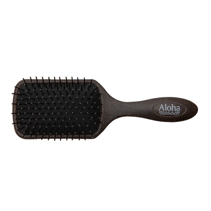 Made with biodegradable coffee grounds and nylon bristles. Designed in Hawaii. Inspired by the Islands of Hawaii, entranced by the rich Polynesian art and design. Captivated by the intricate patterns of waves led us to creating a hairbrush that not only celebrated this art but also incorporated its functional aspects into a unique product. Our passion for long hair care drove us to develop a paddle brush specifically designed to detangle wet or dry hair with ease while providing a soothing scalp massage experience reminiscent of spa treatments. Heat resistant to 175° F. ( If you want to use with a blow dryer , use with a lower heat setting and always keep the dryer moving and not directly on hair for too long of a time)