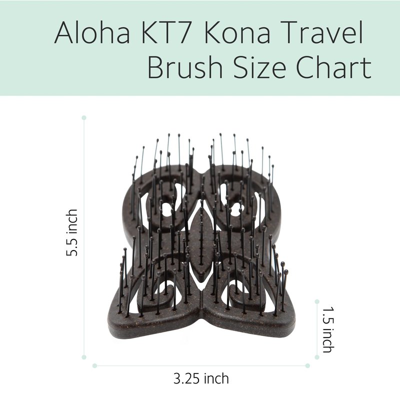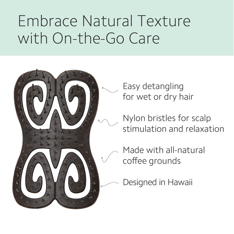 Made with biodegradable coffee grounds and nylon bristles. Designed in Hawaii. Wet or dry hair. Shower and product friendly. Our goal with the Kona Travel Brush was to create a multi-purpose brush that could be taken along on various journeys, whether it's to the gym, on the go, or in the shower. It was crucial for us to infuse stylish Polynesian art into the design as a way to pay homage and add a touch of beauty to an everyday item. We meticulously thought through every aspect of the brush's functionality and portability. Ultimately, we aim for anyone using our Kona Travel Brush to feel a deep connection with nature while experiencing delight in the simplicity of easy hair care no matter where they are.