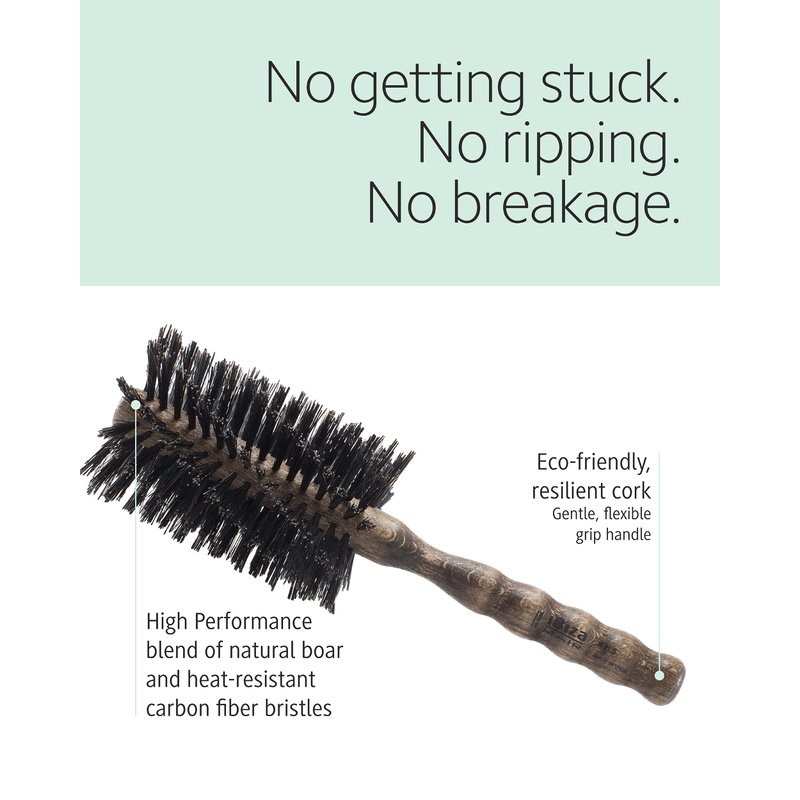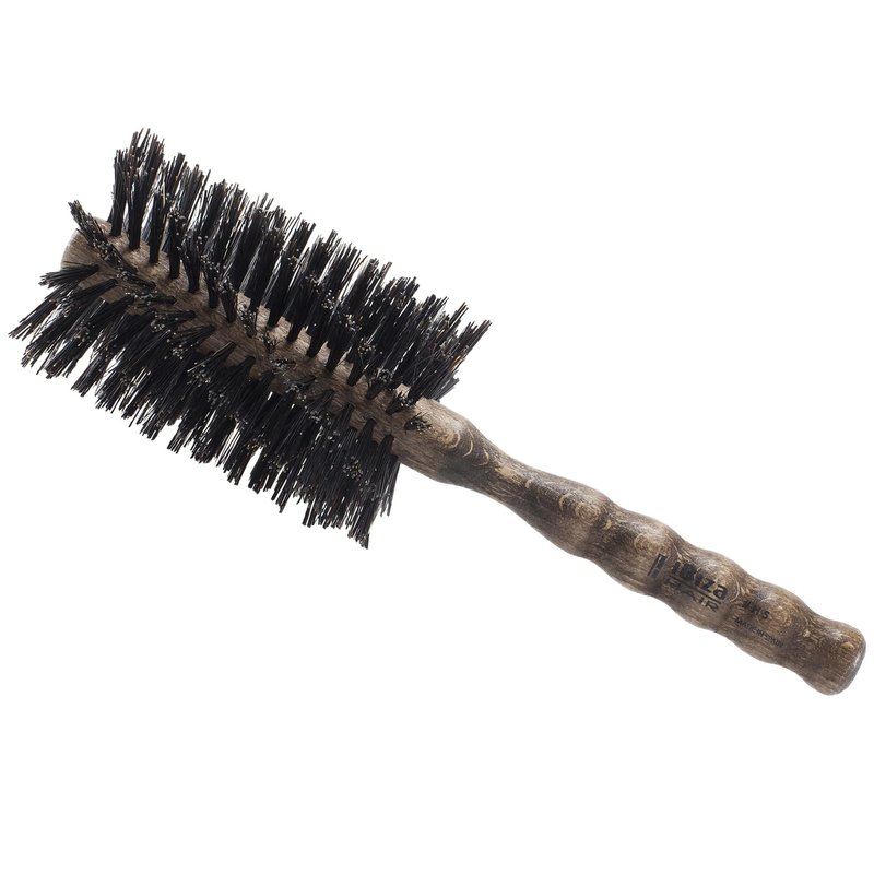 Ibiza Hair Professional Boar Hair Round Brush (H5,70mm) Hybrid Swirled Boar/Nylon Bristles & Hardwood Handle, Create Volumized Straight Looks, For Course or Frizzy Hair, Add Texture & Shine