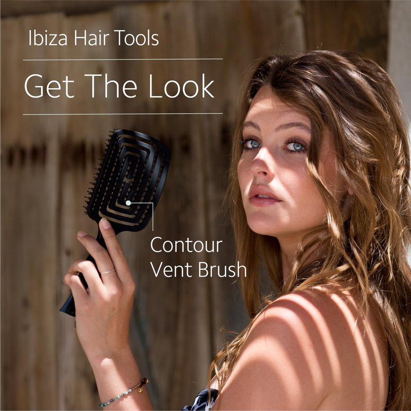 Ibiza Hair Professional Detangling Brush with Boar/Nylon Ball Tip Bristles (Contour Vent), Geometrical Design Contours to the Shape of the Head for Damage Free Detangling, Waterproof, Heat Resistant