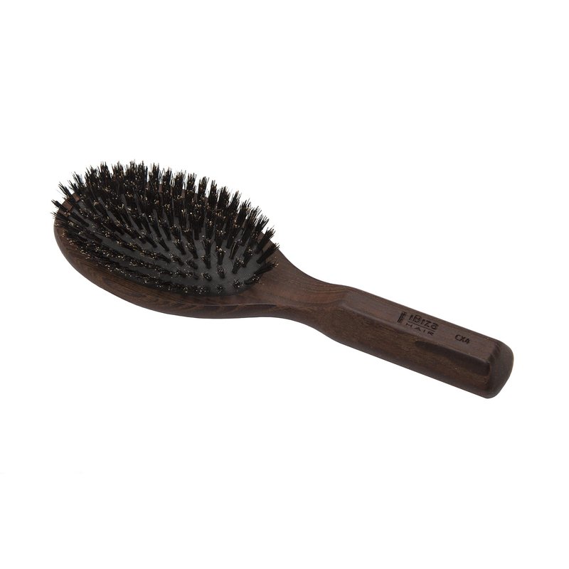 - CX4 - Oval flat brush with boar bristles, rubber pneumatic pad & carbonized wood handle.