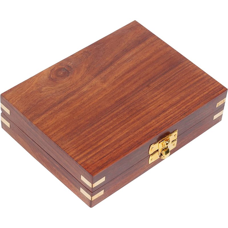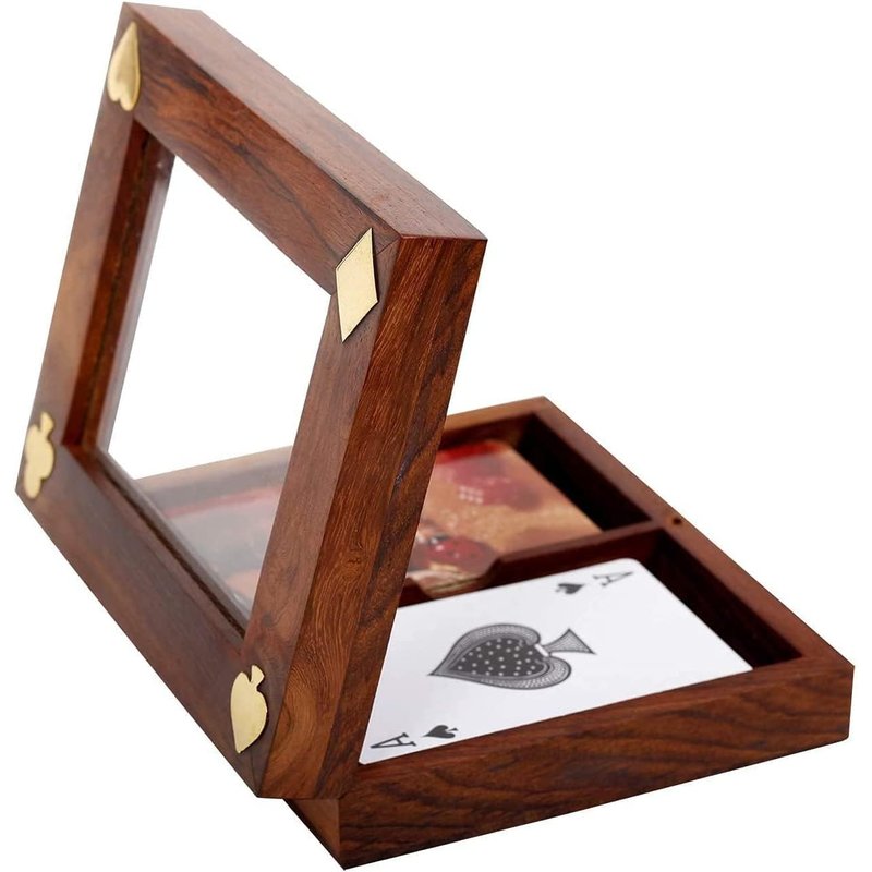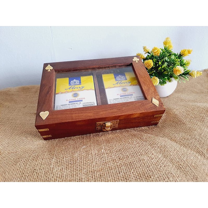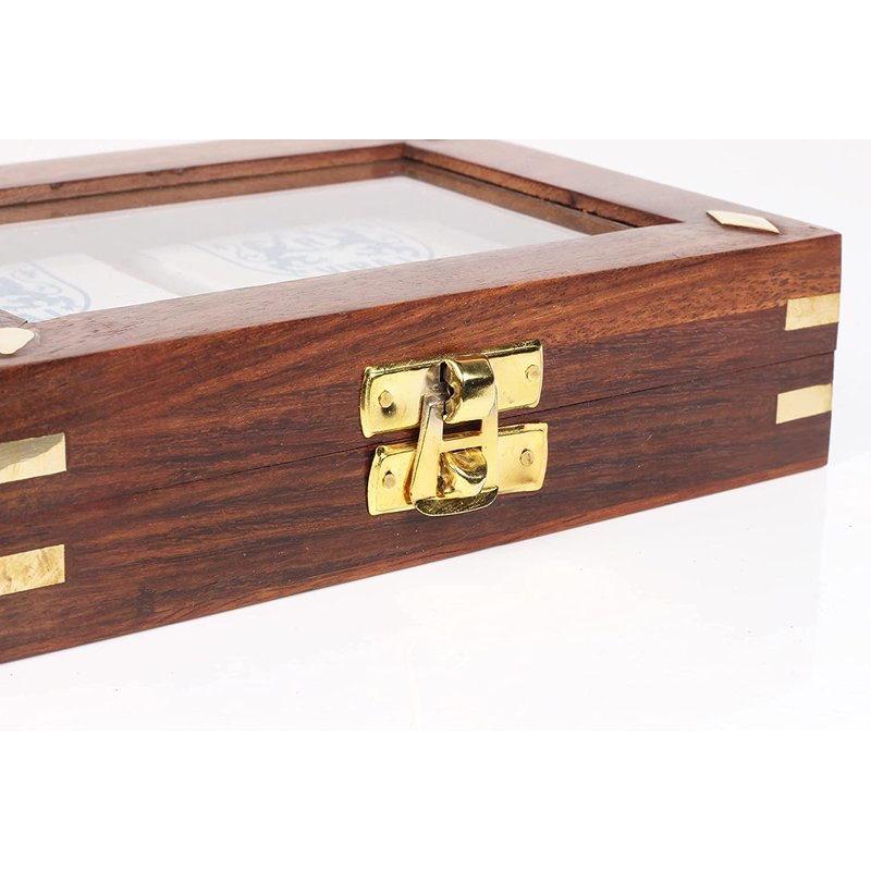 - STRONG AND DURABLE Sheesham wood. one of the finest richly hued timber available (comes without cards). Its lid has been adorned with a handmade card brass inlay.