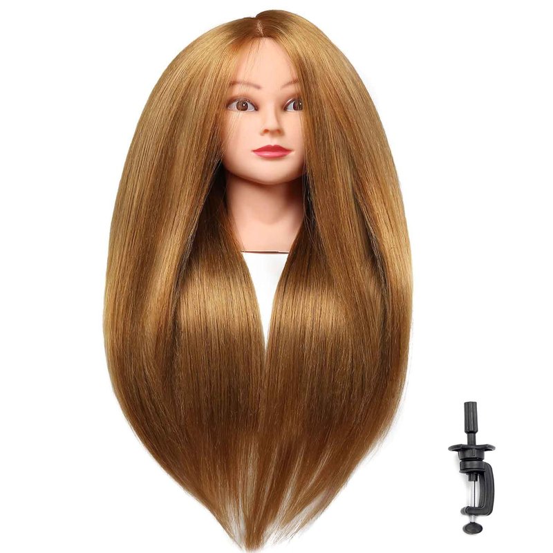 IBLUES 26"-28" Mannequin Head with 60% Real Hair, Hairdresser Practice Training Head Cosmetology Long Hair Manikin Doll Head with 9 Tools and Clamp - #27 Golden, Makeup On