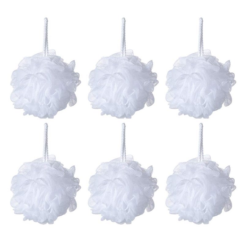 iboodi Bath Sponge Loofah Shower Pouf White Mesh Shower Puff Pack of 6 (35g/pcs)