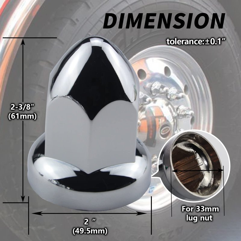 iBroPrat 33mm Chrome Lug Nut Covers Push On,ABS Chrome Plastic Push-on Bullet Flanged Lug Nut Covers for Semi Trucks
