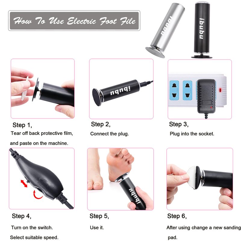- 【Packaging Details】1 x elelctric foot file, 1 box repacement sandpaper disk(60pcs), 1xUS plug, 1xuser man. Ibubu is committed to ensuring client satisfaction and quality control. Your purchase is completely risk-free thanks to the full refund or free change warranty that is offered!