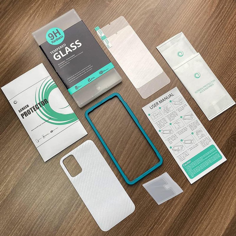 - ★[Package Including]2Pcs Tempered Glass screen protector;1Pc Camera Lens Protector;1Pc Back Carbon Fiber Skin Protector(transparet color);1Pc Easy Installation Frame; 2packs installation accessory kits,1Pc Installation Instructions