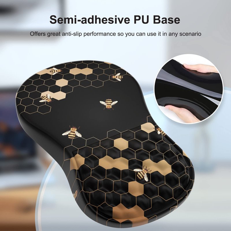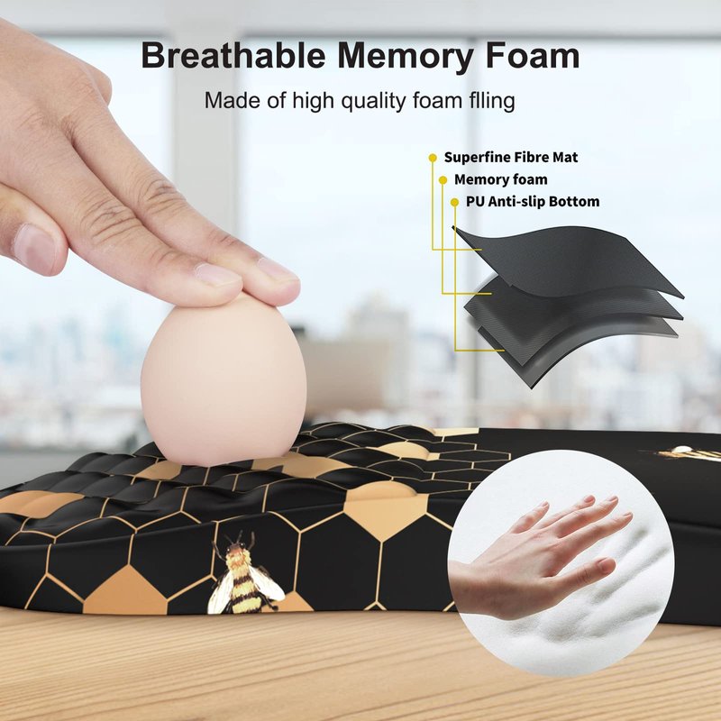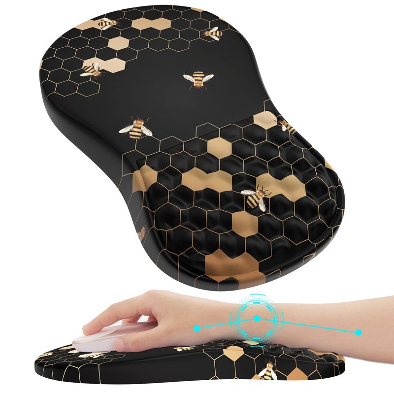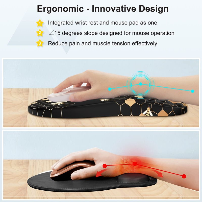 iCasso Ergonomic Mouse Pad Wrist Support, Wrist Rest, Comfortable Computer Gel Mouse Pad for Laptop, Memory Foam,Pain Relief Mousepad with Non-Slip PU Base for Office Home (Honeycomb)