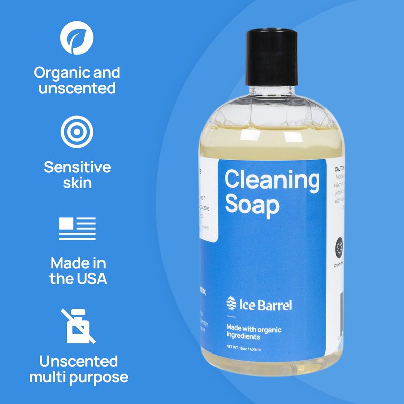 -Made in USA -Made with Organic Ingredients -Cruelty Free The perfect soap for cleaning the Ice Barrel. A custom blend of coconut and sunflower oils that's gentle on skin but tough on dirt and grime.