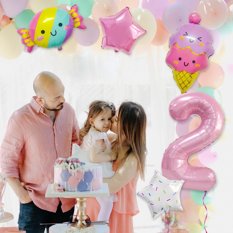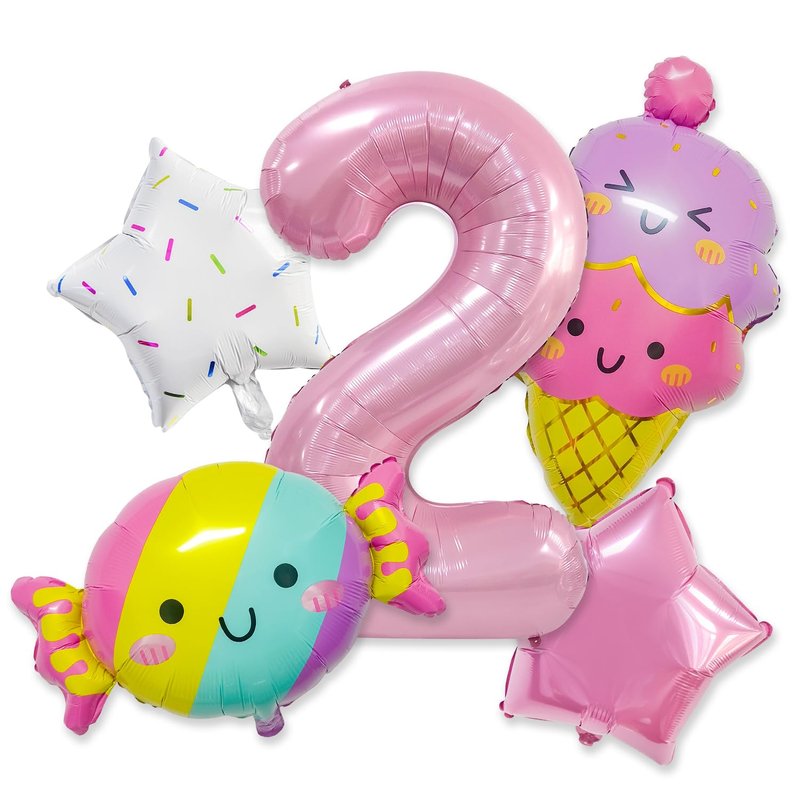 - Package include: 1*32” pink balloon (Number 2), 2* 18” star balloons, 1* 25” candy balloon, 1*26” ice cream balloon.