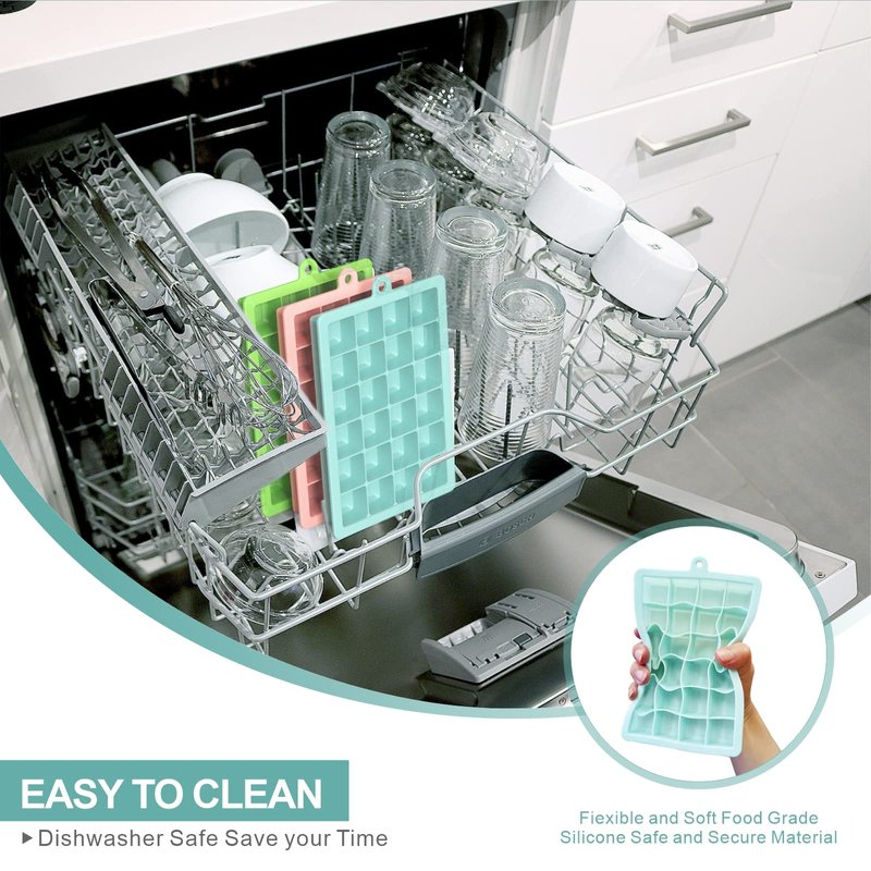 - 3.Easy to Clean: Our ice cube trays are made of high-quality soft silicone that can withstand the dishwasher without damage. You can simply put them in the dishwasher or rinse them with tap water without causing any damage.