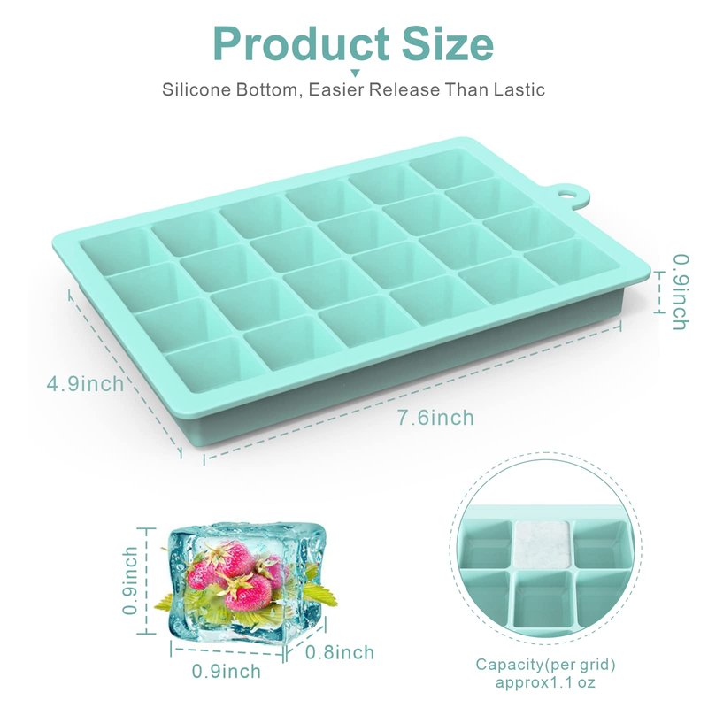 - 2.Large Capacity Design: A set of 3 ice cube tray with 24 slots in each tray, producing perfect square ice cube (0.98 inches each). The ice cube are large enough to cool your drinks or beer quickly, and they melt slowly.
