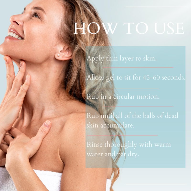 - Instant Skin Transformation - Experience revitalizing skin care with our gentle, non abrasive gel that exfoliates, hydrates, and leaves your skin fresh. All in just 2 minutes.