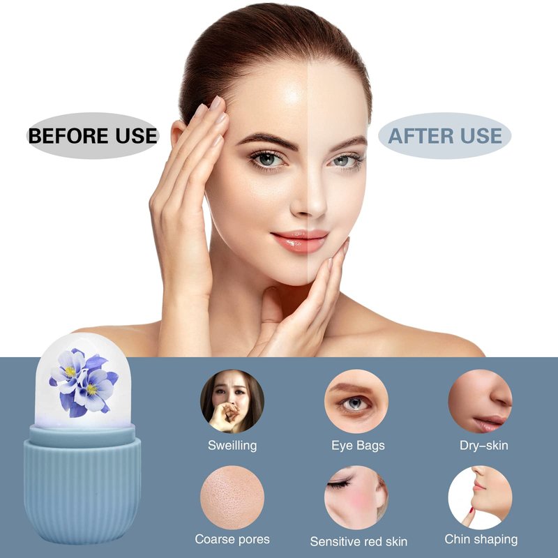 - 【DIY CREATIVE USING】: The face roller ice can well improve your skin condition. The facial ice mold supports customizing skin care recipes for your skin needs, such as Cucumber for De-puffing, Rose for whitening, Aloe for Inflammation, Lemon for Brightening. Also you can use a juicer, then add water essential oils and roses to an ice face mold.