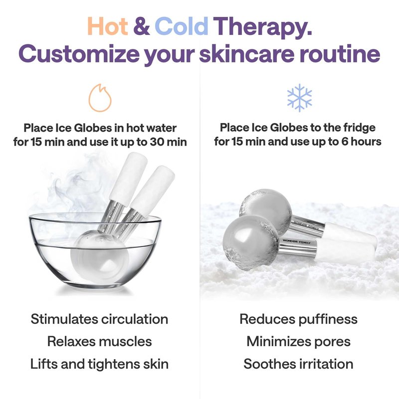 - HOT OR COLD FACE GLOBES: freeze our facial roller to make a true ice stick for face, or heat it up in water and use as a hot massager for face; these hot or cold globes for facials can switch temperatures to provide versatile skin care