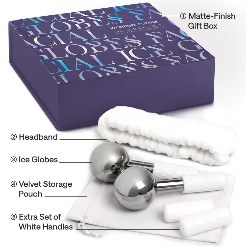- THOUGHTFUL GIFT FOR WOMEN, MEN: our facial ice roller comes with a gift box, white handle set, and velvet pouch; this cold roller for face is ideal for those cherishing their skin care, providing ice globes for eyes, neck, facials