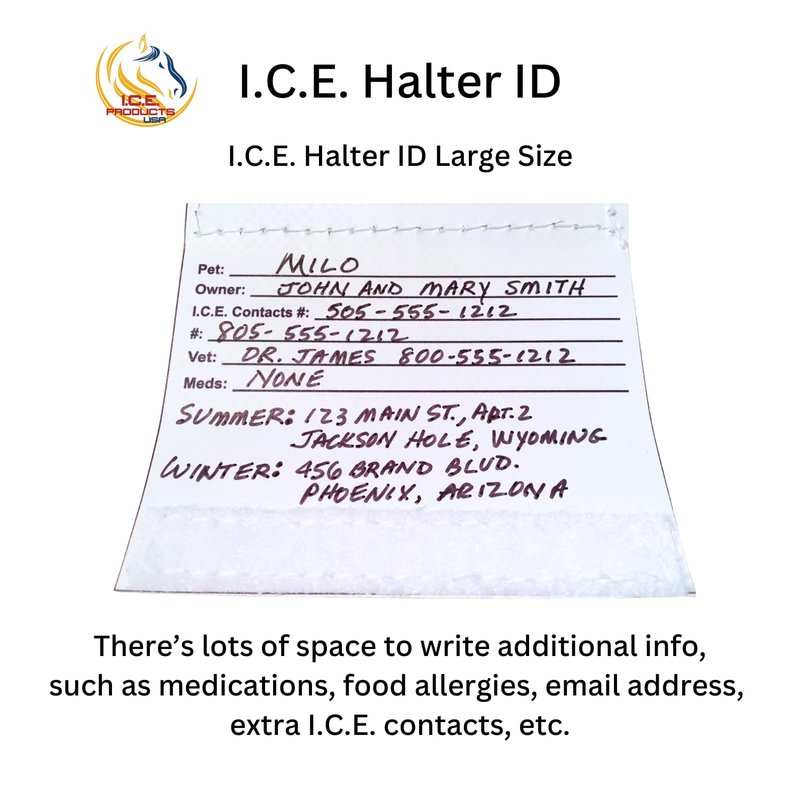 I.C.E. Halter ID Wraps Around a Flat or Rope Halter and Provides Your Emergency Contact Info to First Responder. Ideal for Everyday Use as well as for Natural Disaster Preparation (Large)
