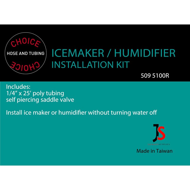 Ice Maker Supply Line and Humidifier Installation Kit for Refrigerators & Freezers, 1/4” x 25’ Poly Tubing, Includes Quick Connect Saddle Valve, Compression Fittings and Adapters