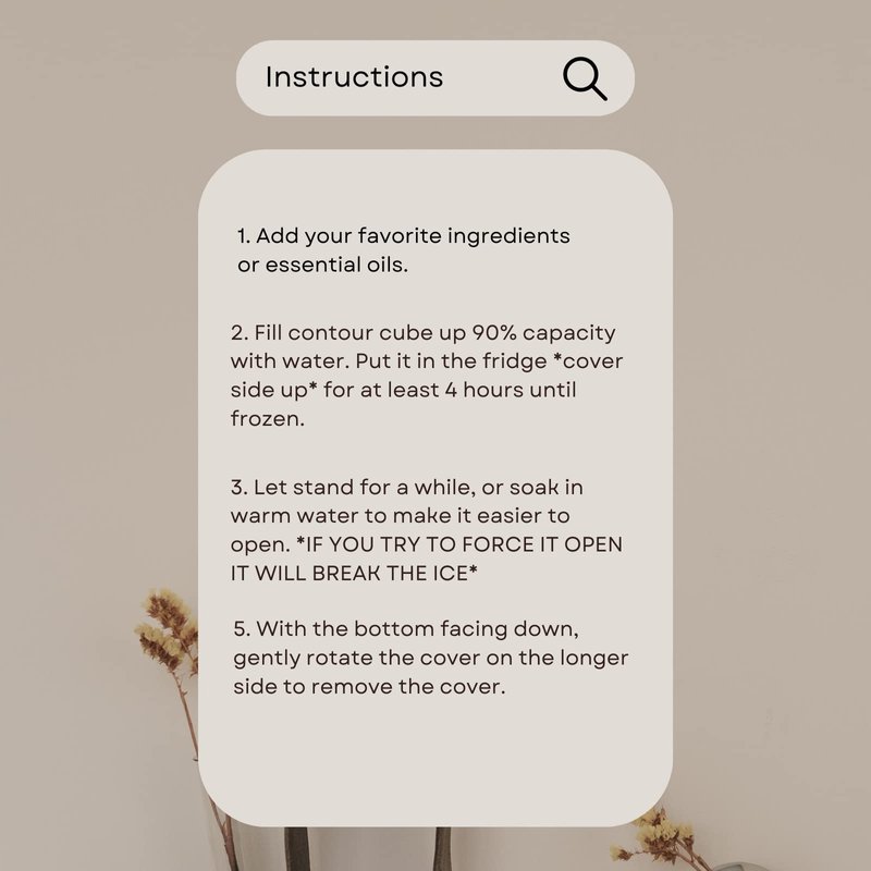 New 2022 Contouring Design upgrade! The one and only cryotherapy tool you’ll ever need to brighten, smooth, depuff and tighten the skin. *Also a PERFECT GIFT idea for Mother’s Day, Birthdays, Anniversaries, and Holidays.* How to use: 1. Add your favorite ingredients or essential oils. 2. Fill contour cube up 90% capacity with water. 3. Put it in the fridge cover side up for at least 4 hours until frozen. 4. Let stand for a while, or soak in warm water to make it easier to open. *IF YOU TRY TO FORCE IT OPEN IT WILL BREAK THE ICE* 5. With the bottom facing down, gently rotate the cover on the longer side to remove the cover. 6. Use ice cubes in circular motions on your face.