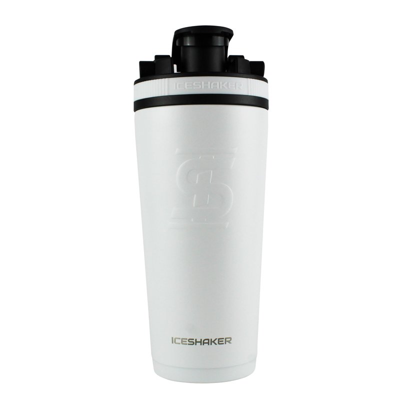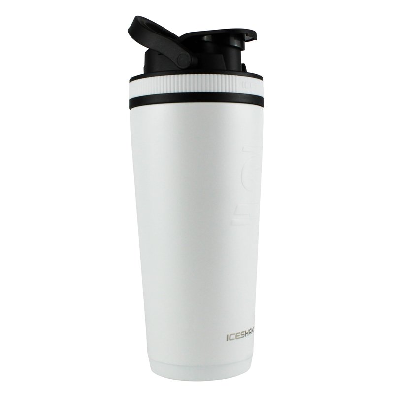 "Shake things up with Ice Shaker's 26oz. Shaker! Invested in by Mark Cuban on ABC's Shark Tank and created and used by the Gronkowski Brothers and athletes everywhere, the 26oz. Shaker is a high-quality, double wall insulated protein shaker bottle that will keep your drink cold for 30+ hours! The 26oz. Shaker features a patented, noise-free twist on agitator that is designed to blend protein powders and work as a strainer to ensure a perfect drink every time. Constructed from premium, kitchen-grade stainless steel, the 26oz. Stainless Steel Bottle will not absorb odors and is double wall insulated to keep your drinks cold for hours and prevent condensation from building up on the outside of the bottle. For easy measuring, the 26oz. Shaker is equipped with internal measurement lines that lets you add the perfect amount of liquid to mix up any tasty concoction! The silicone base of the cup prevents it from sliding, chipping, and makes the cup less noisy when setting it down. For added convenience, it fits in all standard size cup holders so that you can take your 26oz. Shaker anywhere you go! Stop dealing with smelly plastic bottles that don't keep your drinks cold and shake things up with Ice Shaker's 26oz. Shaker! OTHER DRINKS THE 26OZ. SHAKER CAN BE USED FOR: pre-workout juices, protein powder shakes, BCAAs, coffee, smoothies, cocktails, iced tea, and water!"