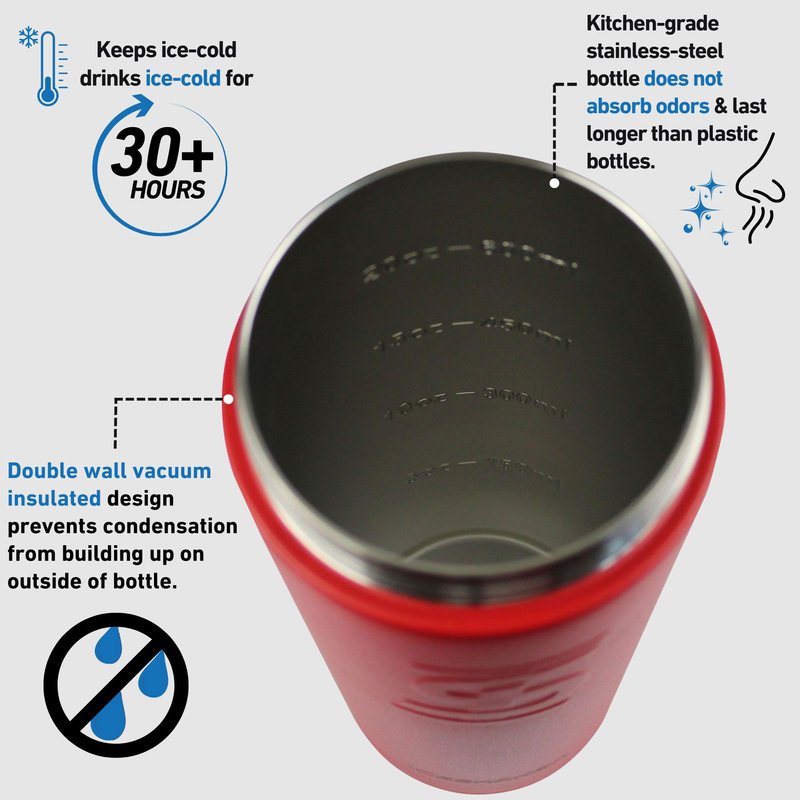 - KEEPS DRINKS ICE-COLD & HOT: The double-wall, stainless-steel, insulated design keeps ice-cold drinks ice-cold or hot drinks hot for hours (3rd party tested) and prevents condensation from building up on the outside of the bottle.