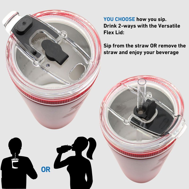 - VERSATILE FLEX LID: Ice Shaker's 26oz Tumbler Flex Bottles come with reusable Tritan straw & a Flex Lid that lets YOU choose how you want to sip! For ice-cold beverages, use the straw. For hot beverages, flip back the drink flap to enjoy your hot coffee. For a leak-proof bottle, remove the straw and plug the straw hole.