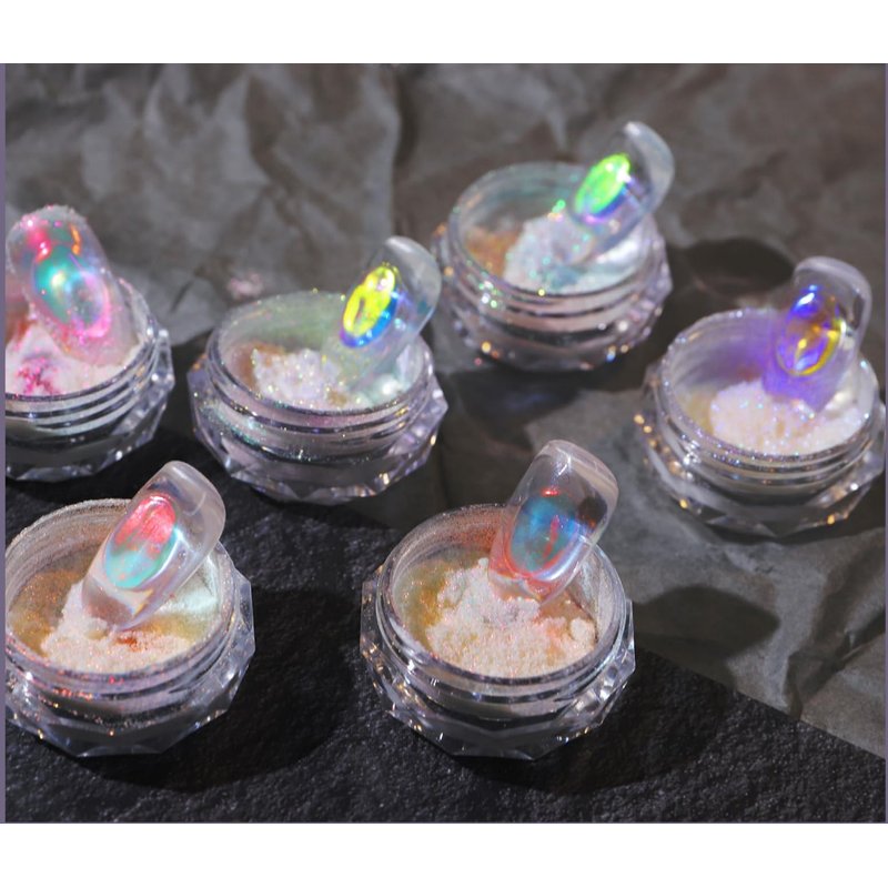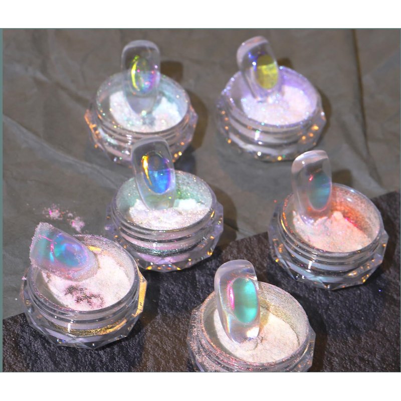 Ice Transparent Aurora Nail Powder Neon Rainbow Holographic Chameleon Powder Multi Chrome Iridescent Pigment Pearlescent Nail Art Glitters (6 Boxes Transparent)