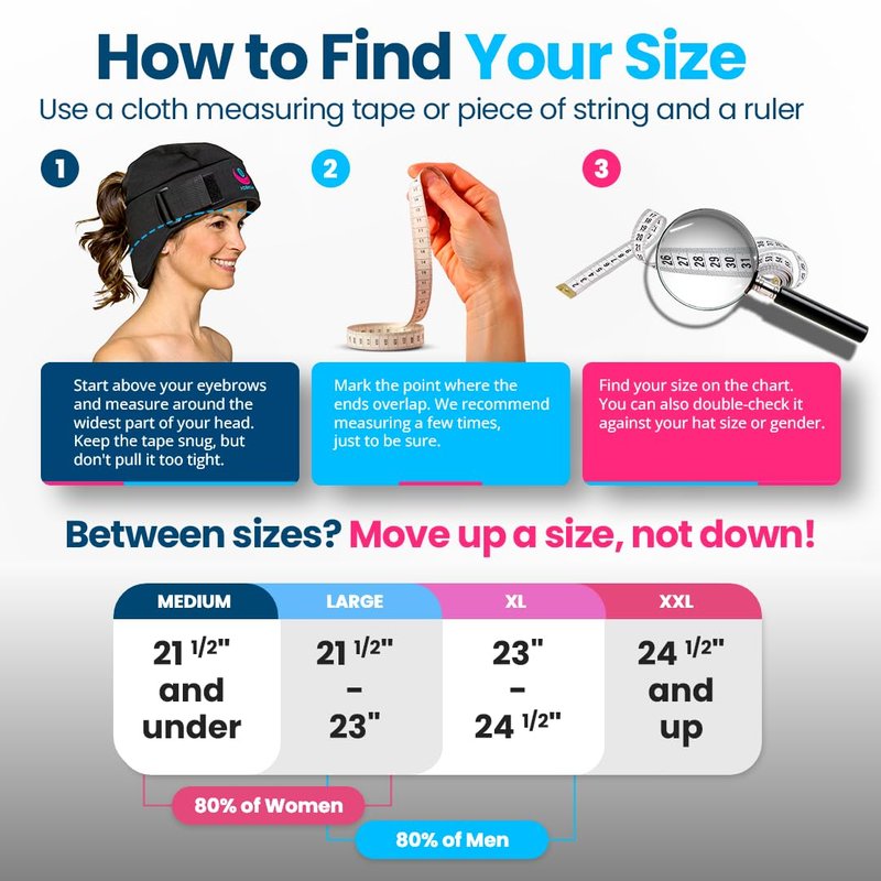 - SIZING GUIDE: This is a fitted cooling cap that works best when sized properly — so be sure to consult the sizing guide in the image gallery or our Store page to get the right sized cap. If between sizes, move up a size because the adjustable straps will help you tighten the migraine cold cap — and trust that, . Consult the sizing chart to find your size, and get ready to experience the relief of scalp cooling with Icekap.