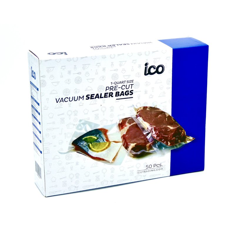 The ICO Vacuum Sealer Bags are heavy duty, certified BPA and Phthalate free. These food sealer bags are a premium alternative to brand name embossed style pre-cut bags and are designed for use with Foodsaver and other brand vacuum sealers. These vacuum food sealer bags are the perfect Quart size the 8"x12" bags, ideal for storing multiple portions of fruits or vegetables, large cuts of steak, pork chops, chicken breasts, and more. Great for sous vide cooking with the ability to heat up to 170°F (75°C). Pack and freeze your bulk buys, fresh game or fish with no fear of freezer burn or dehydration.