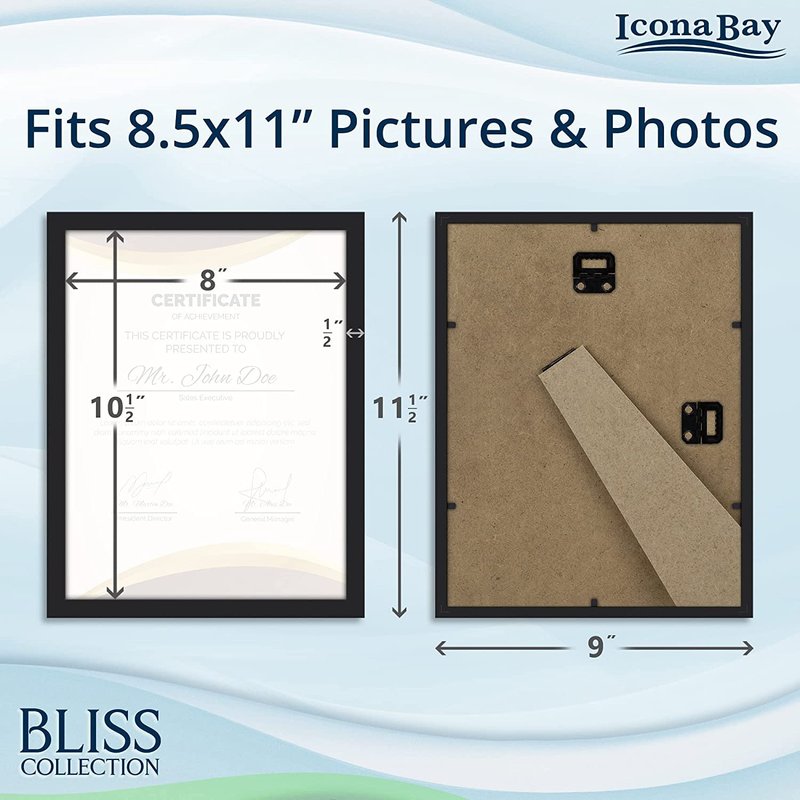 Icona Bay 8.5x11 Black Certificate Frame, Modern Style Wood Composite Document Frame, Table Top or Wall Mount, Bliss Collection