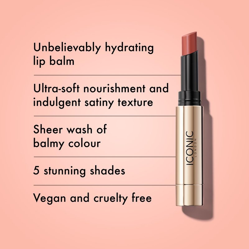 - This beautiful balm is anything but basic. It’s powered with rich, lip-loving ingredients to nourish your pout – instantly on application and with continued benefits throughout the day. Not only that, but it wouldn’t be an ICONIC product without ticking off those glam boxes. The sheer wash of colour gives the illusion of an instantly plumped pout and sheen of a non-sticky gloss. The effect? A perfectly pretty pout that’s seriously smooch-worthy!